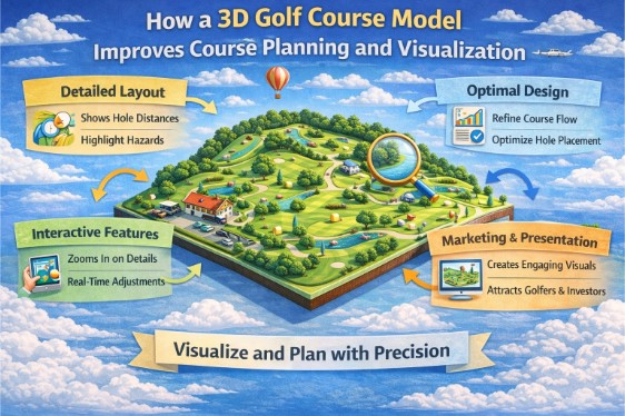 Planning a golf course thus requires precision, creativity, and foresight. The 3D golf course model brings together all three by transforming complex design information into a clear visual experience. It aids the designers in the understanding of the terrain, enhances layout selections, aids in getting approvals, and minimizes costly surprises.